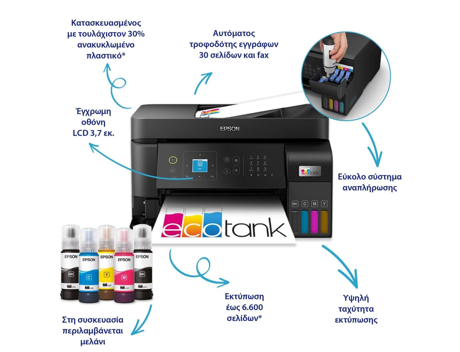 EcoTank L5590 - A4 Πολυμηχάνημα με δοχεία μελανιού, Wi-Fi και αρχικό μελάνι έως και 3 έτη