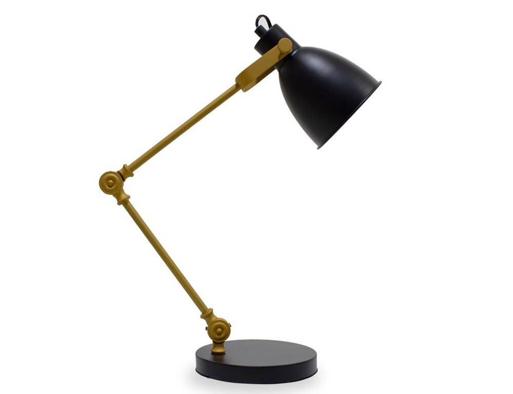 Φωτιστικό Γραφείου Pakoworld PWL-0001 (099-000129) με Σπαστό Βραχίονα, λαμπτήρα Max Ε27 και διαστάσεις Φ18 x 34-67cm - μαύρο/χρυσό ματ