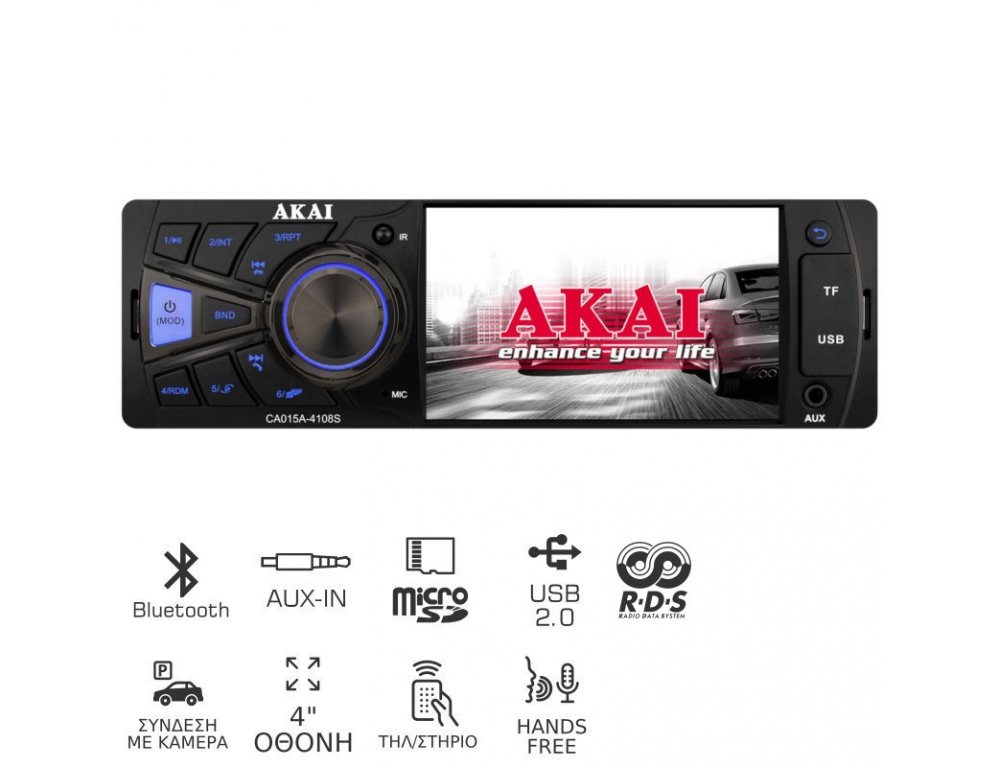 Ηχοσύστημα αυτοκινήτου Akai CA015A-4108S με μεγάλη οθόνη, FM Stereo, Bluetooth, USB, micro SD και Aux-In