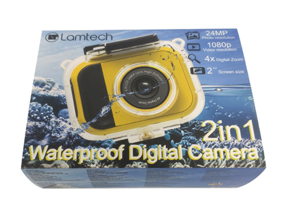 Ψηφιακή κάμερα από την Lamtech σε κίτρινο χρώμα με αδιάβροχη θήκη. Υποστηρίζει Loop recording & Sport mode και κάρτα μνήμης micro-SD 32 GB. Διαθέτει ενσωματαωμένη επαναφορτιζόμενη μπαταρία Li-ion 650mAh. Ανάλυση φωτογραφίας έως 24MP και ανάλυση βίντεο 1920 x 1080 στα 15fps.