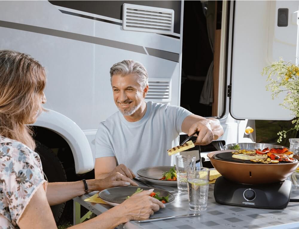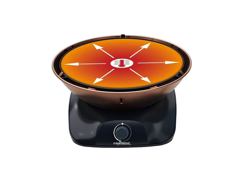 Με το 360 Grill CV Copper η προετοιμασία του γεύματος στο τραπέζι γίνεται μια απόλαυση και το μαγείρεμα σε εξωτερικούς χώρους μια ευχάριστη εμπειρία. Τόσο στο σπίτι όσο και στο κάμπινγκ, στο μπαλκόνι ή στον κήπο, το 360 Grill CV Copper είναι μια όμορφη, χρηστική φορητή ψησταριά υγραερίου.