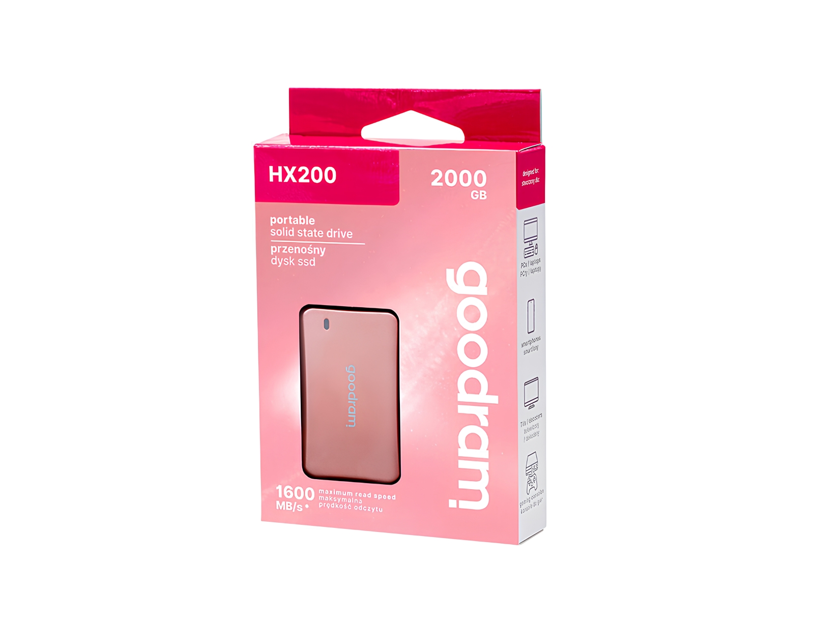 Ο εξωτερικός SSD HX200 GoodRam (2TB) προσφέρει γρήγορη μεταφορά δεδομένων με USB 3.2 Gen 2 x2 και εντυπωσιάζει με το κομψό ροζ χρώμα του. Ιδανικός για όσους αναζητούν ταχύτητα και στυλ σε έναν compact εξωτερικό δίσκο.