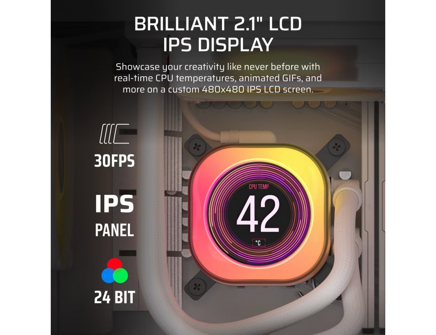 Η προσαρμοσμένη οθόνη LCD 2,1″ 480x480 μπορεί να ελεγχθεί μέσω του iCUE, επιτρέποντάς σας να επιλέξετε από 16,7 εκατομμύρια προσαρμοσμένα χρώματα ή να επιλέξετε από προκαθορισμένες κινούμενες εικόνες και ενδείξεις δεδομένων. Τώρα περιλαμβάνει πλήρη ενσωμάτωση του GIPHY εντός της εφαρμογής, δίνοντάς σας πρόσβαση σε χιλιάδες αγαπημένα σας memes και GIF.