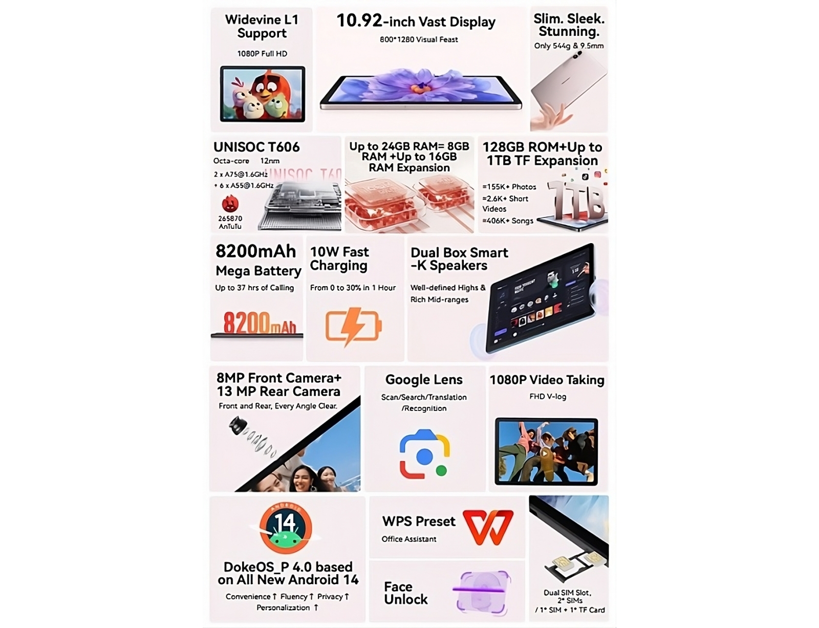 | Χαρακτηριστικά Οθόνης | 10.92-inch 800*1280 HD IPS, 83% Screen-to-Body Ratio |