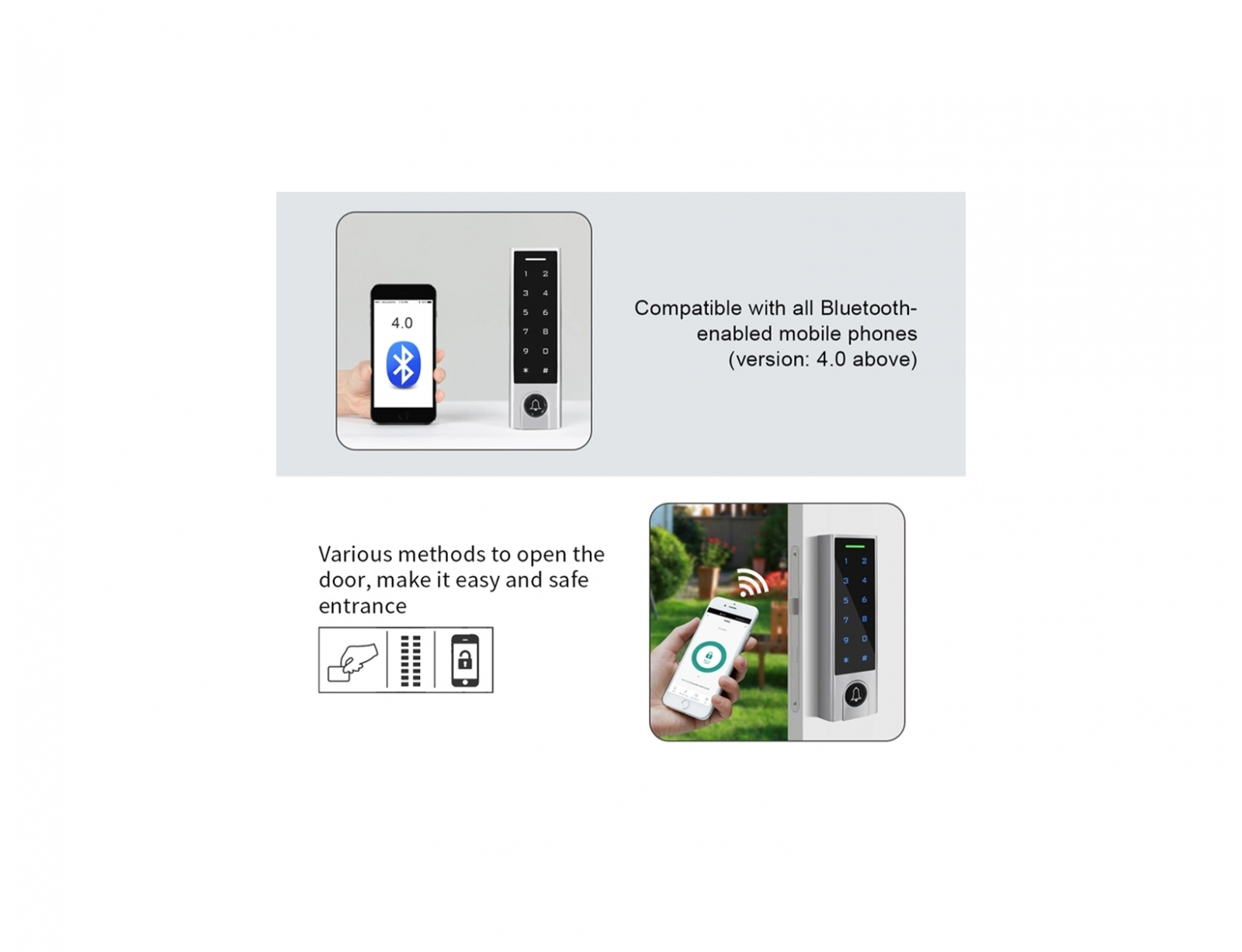- Multiple Access Modes: Smartphone, Card, PIN