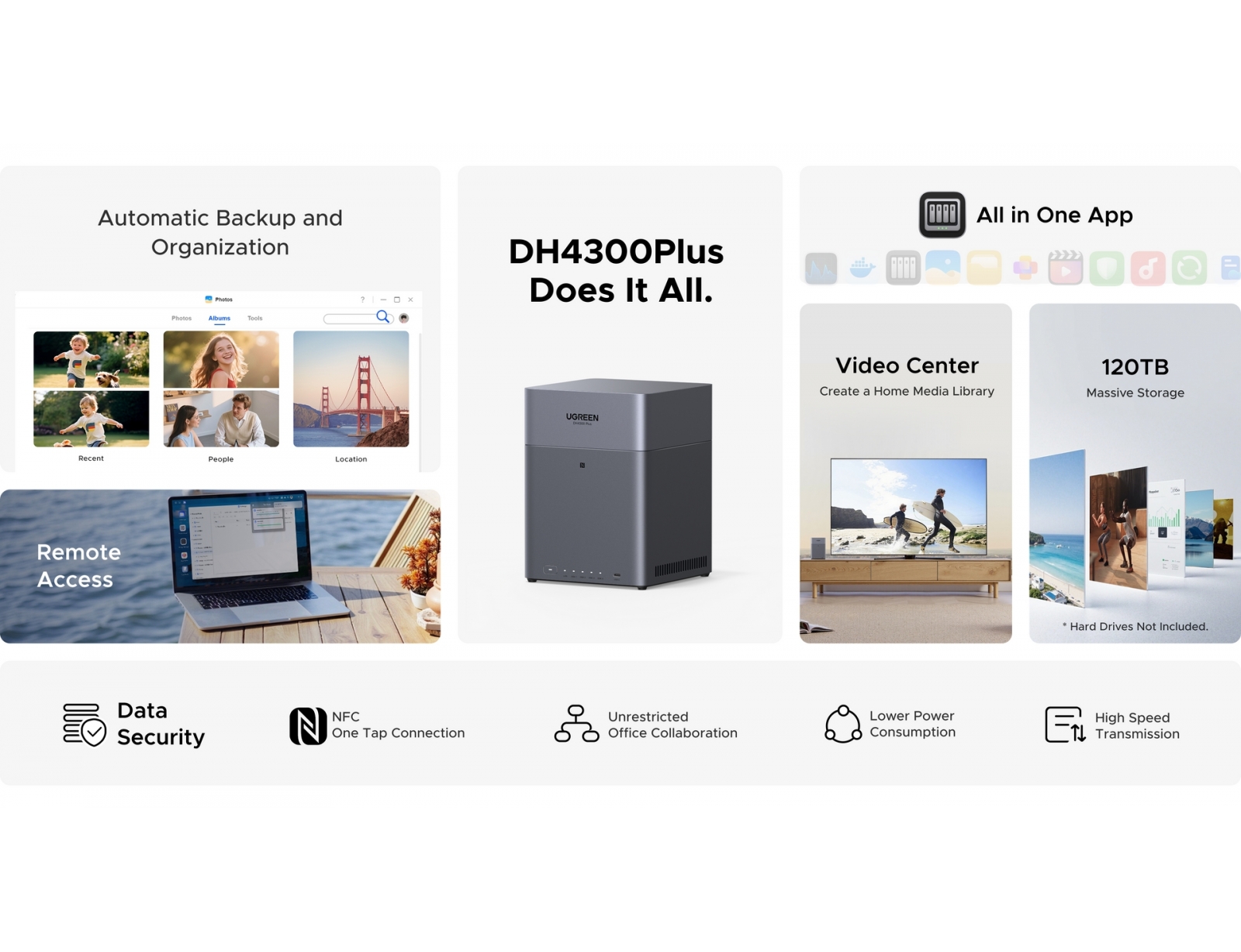 Αξιόπιστο NAS για Οικιακή & Επαγγελματική Χρήση. Απομακρυσμένη Πρόσβαση Χωρίς Περιορισμούς. Το Ugreen DH4300 Plus επιτρέπει στον χρήστη να έχει πρόσβαση στα αρχεία του από οπουδήποτε, είτε μέσω υπολογιστή είτε μέσω κινητού. Με το ενσωματωμένο σύστημα απομακρυσμένης σύνδεσης, κάθε μέλος της ομάδας ή της οικογένειας μπορεί να διαχειρίζεται, να μοιράζεται και να συγχρονίζει δεδομένα εύκολα, χωρίς πολύπλοκες διαδικασίες ή επιπλέον λογισμικό.