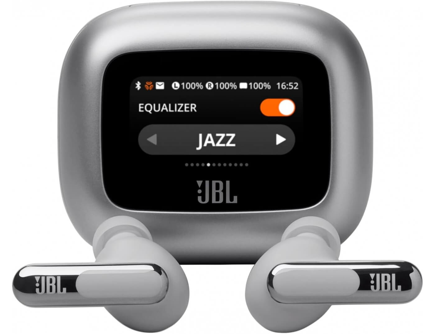 Ασύρματα Ακουστικά JBL Live Beam 3 True Wireless - Bluetooth - True Αdaptive Noise Cancelling - Θήκη Φόρτισης με οθόνη αφής - Ασημί