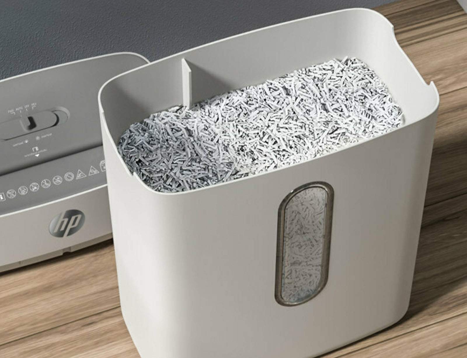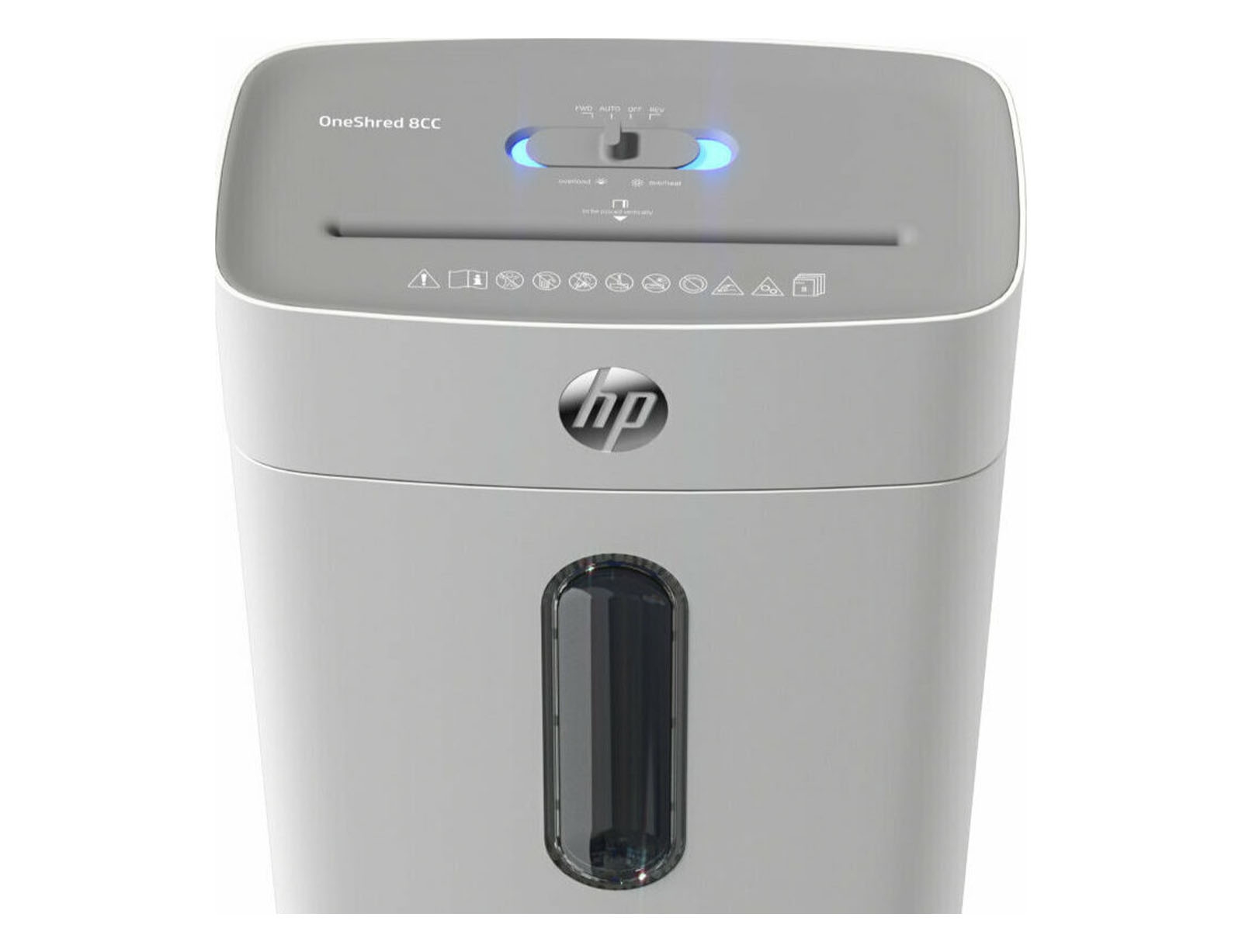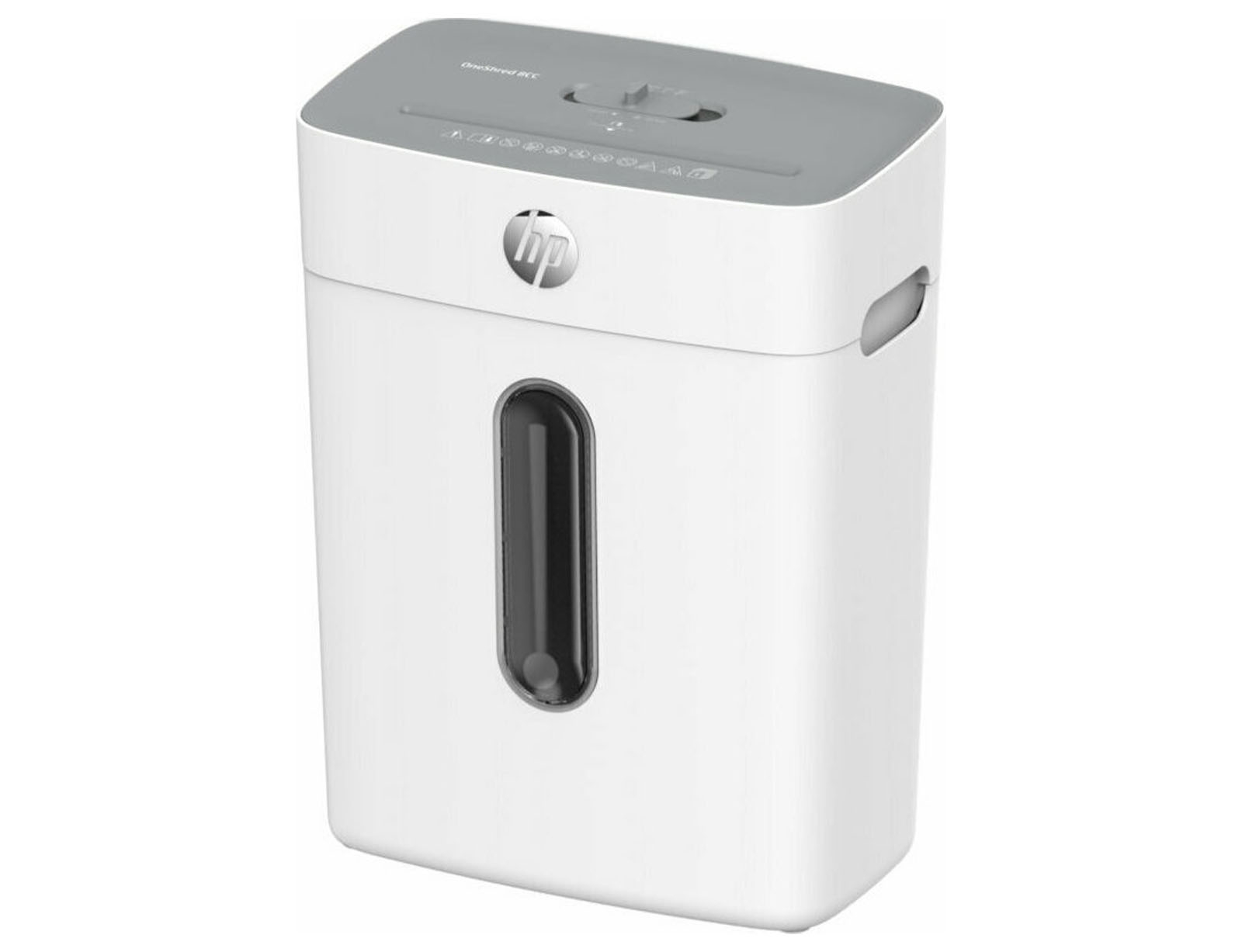 Καταστροφέας εγγράφων HP OneShred 8CC–2801, επιπέδου ασφαλείας P4 με ατσάλινες λεπίδες και κάδο χωρητικότητας 15 λίτρων. Ο καταστροφέας κόβει τα χαρτιά σε μικρά κομμάτια (cross cut) μεγέθους 5x 18 mm ώστε οι πληροφορίες να μην μπορούν να διαβαστούν. Μπορεί να καταστρέψει 8 σελίδες A4 ταυτόχρονα, με ταχύτητα μέχρι 1.8 m/min, και να λειτουργήσει για 4 λεπτά συνεχόμενα πριν χρειαστεί μόλις 50 λεπτά διακοπή. Είναι ιδανικός για γραφεία σπιτιού χάρη στο μεγάλο επίπεδο ασφαλείας, το χαμηλό επίπεδο θορύβου και την ταχύτητά του.
