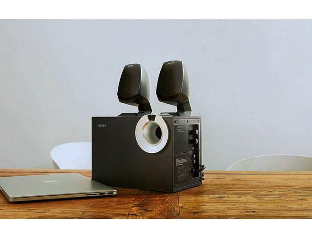 Ηχεία που ακούγονται καλύτερα όταν είναι στο ίδιο επίπεδο με τα αυτιά σας όταν τα ακούτε, γι' αυτό αυτά τα δύο δορυφορικά ηχεία είναι τοποθετημένα στη βάση και έχουν σχεδιαστεί για να τα φέρνουν στο επίπεδο του αυτιού σας για βέλτιστη απόδοση ήχου.