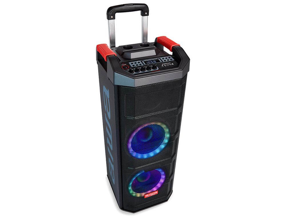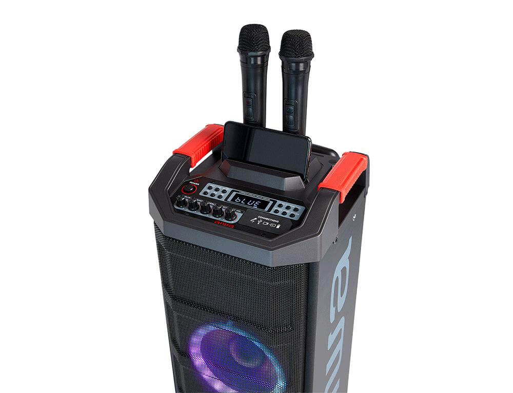 - Ενσωματωμένο σύστημα φωτισμού ηχείων πάρτι RGB-LED.