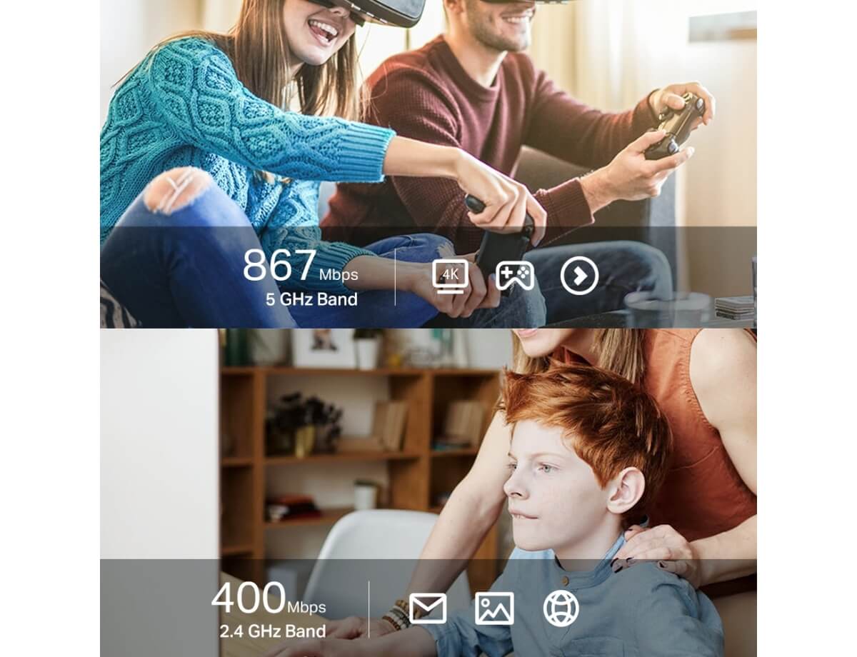 - Απόλυτη ταχύτητα Wi-Fi – Έως και 1300 Mbps ταχύτητες με 400 Mbps στα 2,4 GHz και 867 Mbps στα 5 GHz, αναβαθμίζει τις συσκευές σας σε υψηλότερες ταχύτητες AC WiFi.