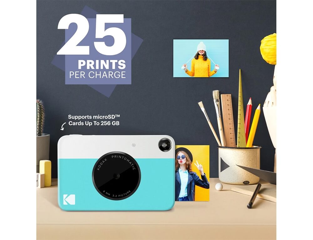Η φωτογραφική μηχανή Printomatic εκτυπώνει άμεσα και αυτόματα φωτογραφίες πλήρως έγχρωμες φωτογραφίες υψηλής ποιότητας. Χρησιμοποιεί φωτογραφικό χαρτί Kodak Zink, επομένως δεν χρειάζονται δοχεία μελάνης ή τόνερ.