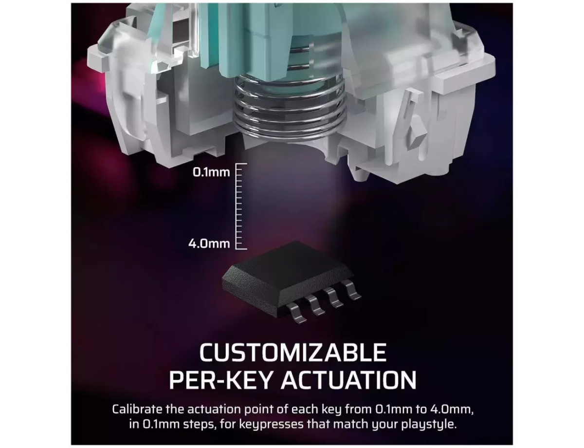 Βελτιστοποιήστε τις ρυθμίσεις σας για ανταγωνιστικό παιχνίδι με ένα κουμπί. Στη λειτουργία παιχνιδιού, το Rapid Trigger ανταποκρίνεται δυναμικά στα πλήκτρα με ρευστά σημεία ενεργοποίησης. Ενεργοποιήστε το πλήκτρο κλειδώματος νίκης. Ο φωτισμός RGB γίνεται στατικός. Και το πληκτρολόγιό σας ανταποκρίνεται με έναν προσαρμοσμένο ρυθμό υπερδιέγερσης.