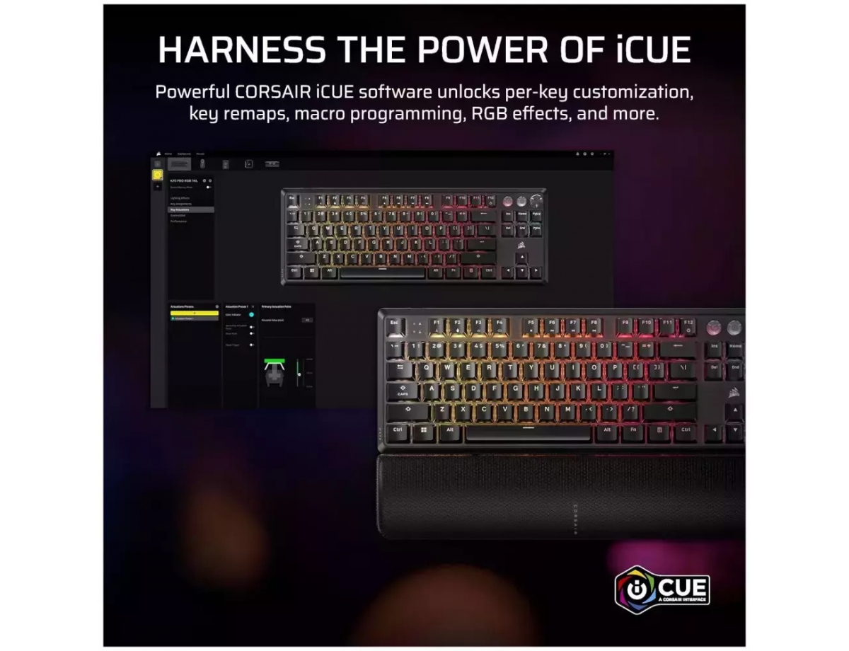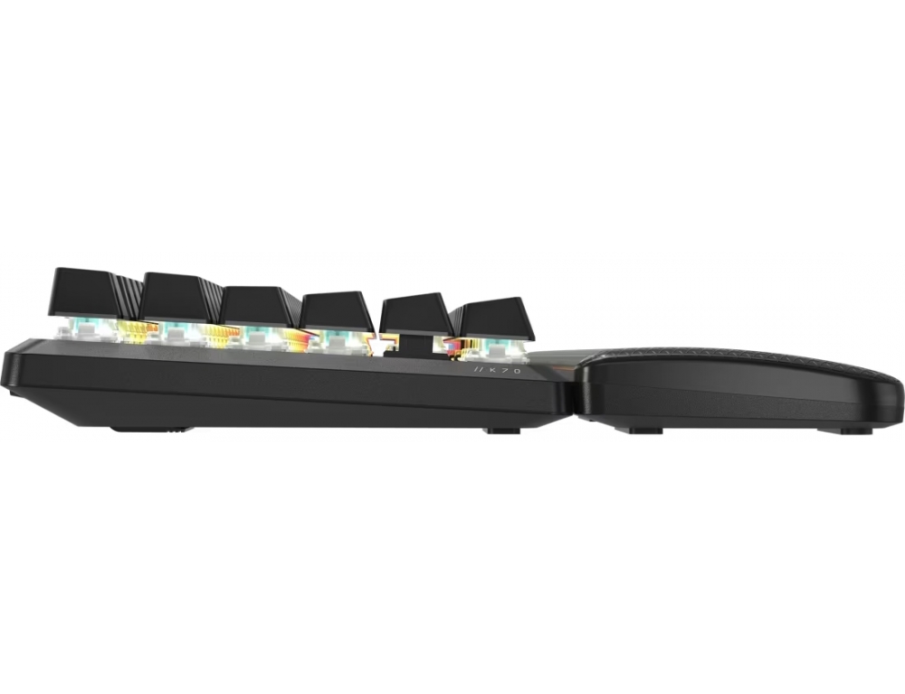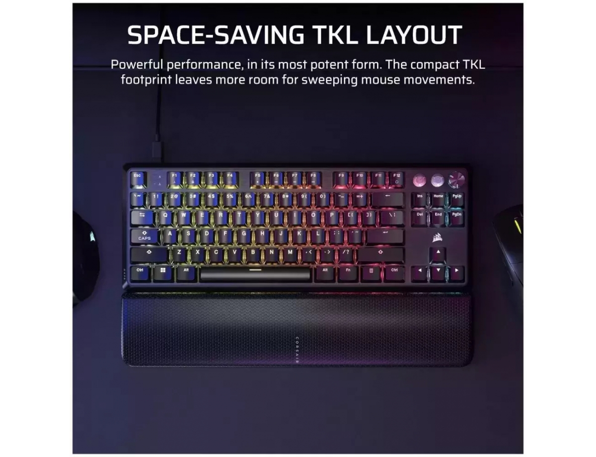 To CORSAIR K70 PRO TKL σας δίνει τη δυνατότητα να αντιδράτε ταχύτερα και να προσπερνάτε όλους τους αντιπάλους, με ρυθμιζόμενους διακόπτες MGX Hyperdrive, Rapid Trigger και ασυναγώνιστο ήχο και αίσθηση πληκτρολόγησης.