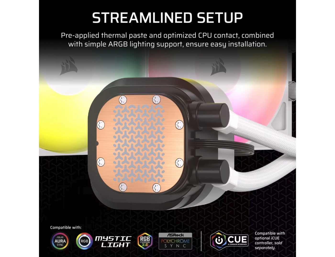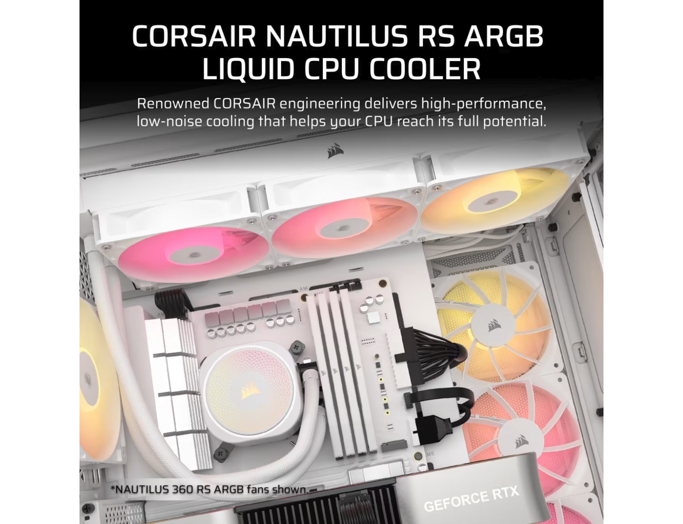 Η υδρόψυξη CORSAIR NAUTILUS RS ARGB Liquid CPU Cooler παρέχει αποτελεσματική ψύξη χαμηλού θορύβου με απλή συνδεσιμότητα - δεν απαιτείται χειριστήριο, απλώς συνδέεται απευθείας στη μητρική σας κάρτα.