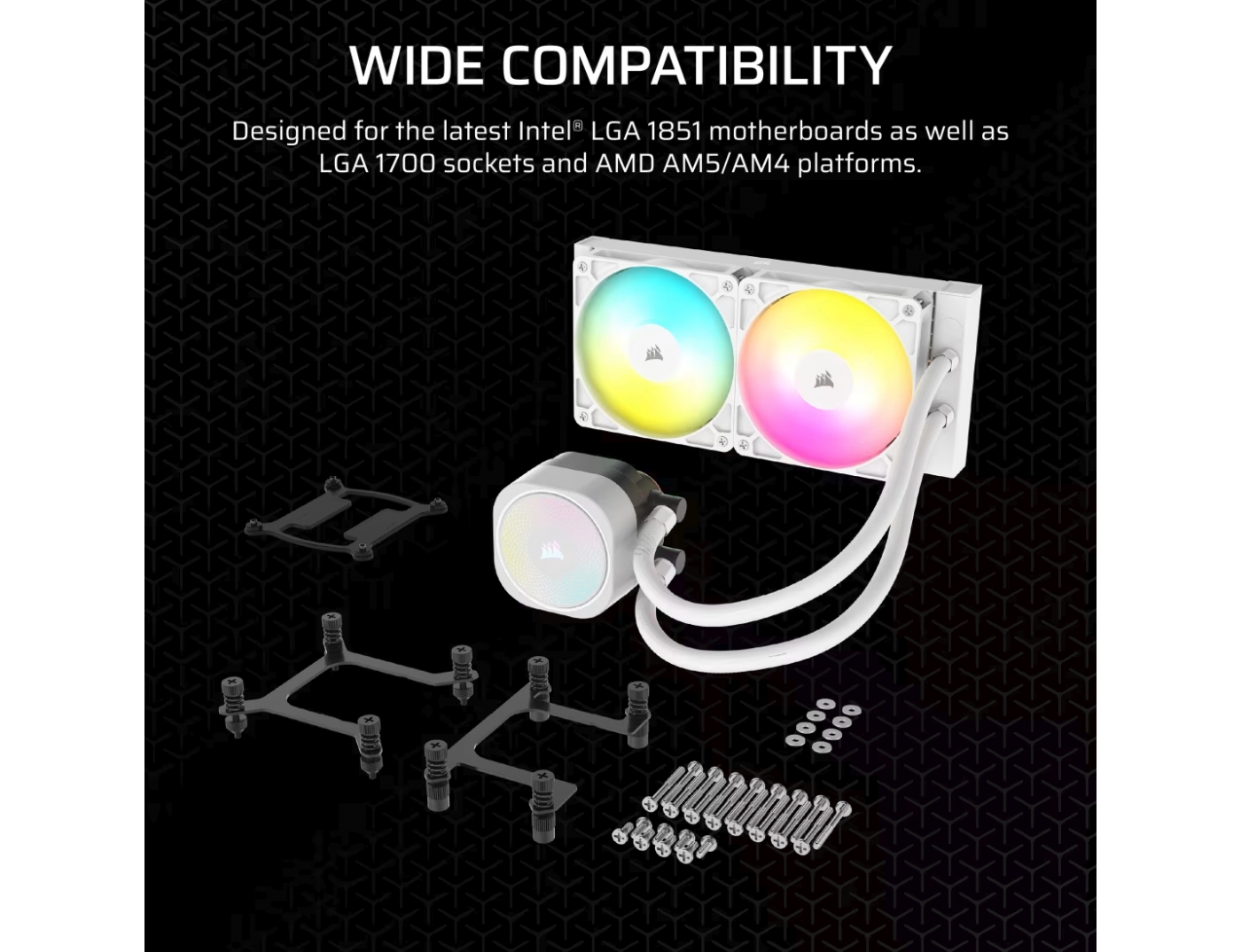 Υδρόψυξη Επεξεργαστή Corsair Nautlus 240 RS - Διπλού Ανεμιστήρα - Socket LGA1851/1700/AM5/AM4 - ARGB - White