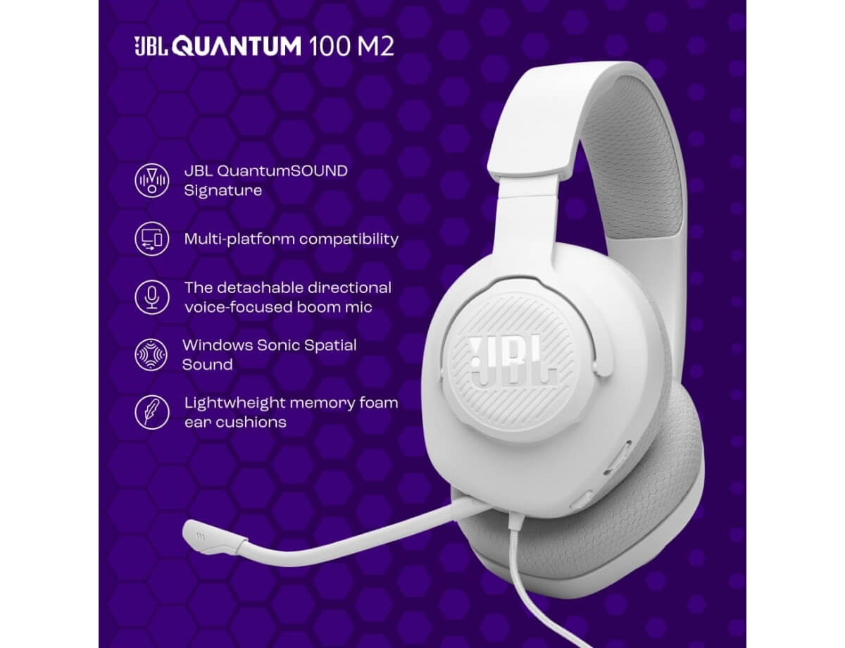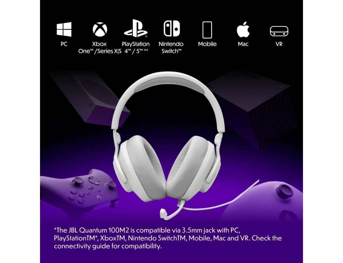 Από την παρακολούθηση των εχθρών σε παιχνίδια FPS έως τις έντονες μάχες MOBA, τα ακουστικά gaming JBL Quantum 100M2 με μικρόφωνο ενισχύουν κάθε νίκη σε PC, Mac, Xbox, PS4/PS5, Nintendo Switch, κινητά και VR.