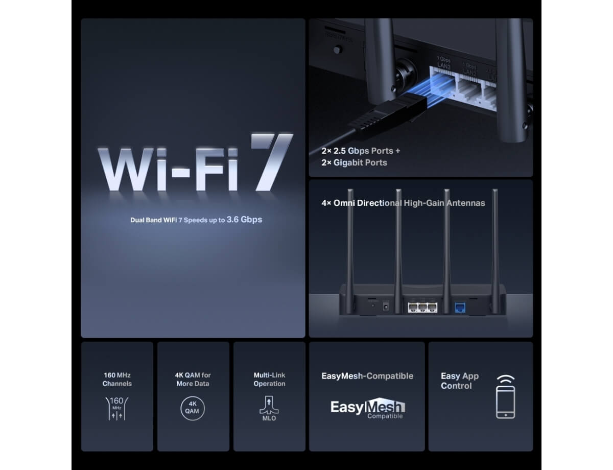 - Θύρα WAN 1× 2,5 Gbps + Θύρα LAN 1× 2,5 Gbps + Θύρες LAN 2× 1 Gbps