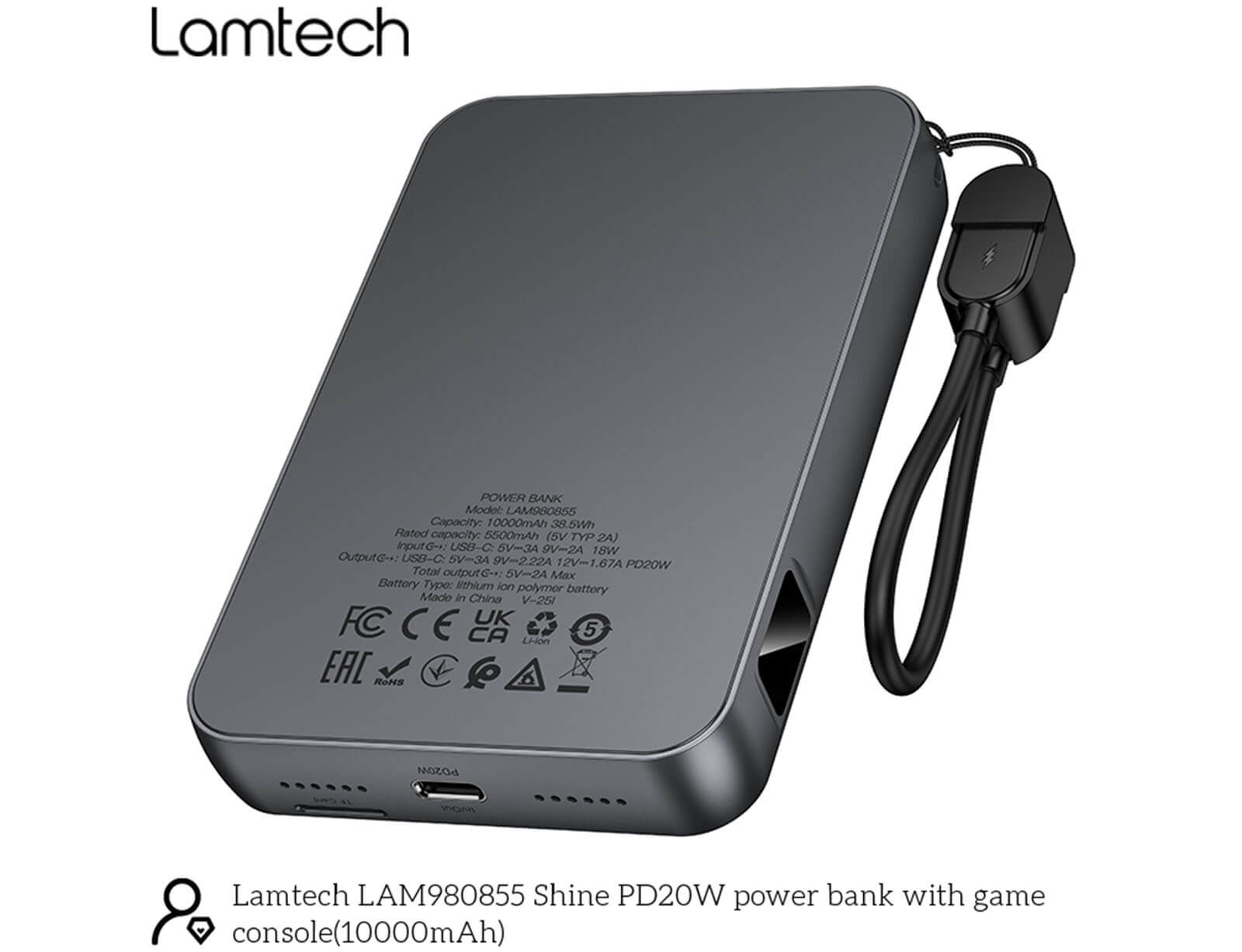 Η ενσωματωμένη LED ψηφιακή οθόνη προσφέρει άμεση και ευανάγνωστη ένδειξη της στάθμης της μπαταρίας και της κατάστασης λειτουργίας, επιτρέποντάς σου να γνωρίζεις ανά πάσα στιγμή το διαθέσιμο επίπεδο ενέργειας και να προγραμματίζεις έγκαιρα τη φόρτιση. Ο πρακτικός και εργονομικός σχεδιασμός της συσκευής την καθιστά εύκολη στη μεταφορά και άνετη στη χρήση, είτε τη χρησιμοποιείς για φόρτιση είτε για gaming. Στη συσκευασία περιλαμβάνεται USB-C lanyard cable, ενισχύοντας ακόμη περισσότερο τη φορητότητα και την καθημερινή ευκολία, ώστε να έχεις πάντα μαζί σου μία αξιόπιστη λύση ψυχαγωγίας και ενέργειας.